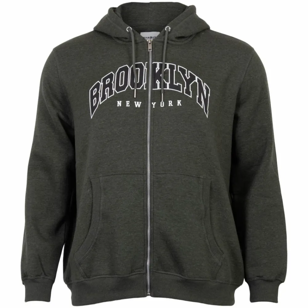 Marcus Clint plus size hættetrøje med gennemgående lynlåslukning. Hættetrøjen har kængurulomme og bred ribkant i ærmer og bunden af trøjen.