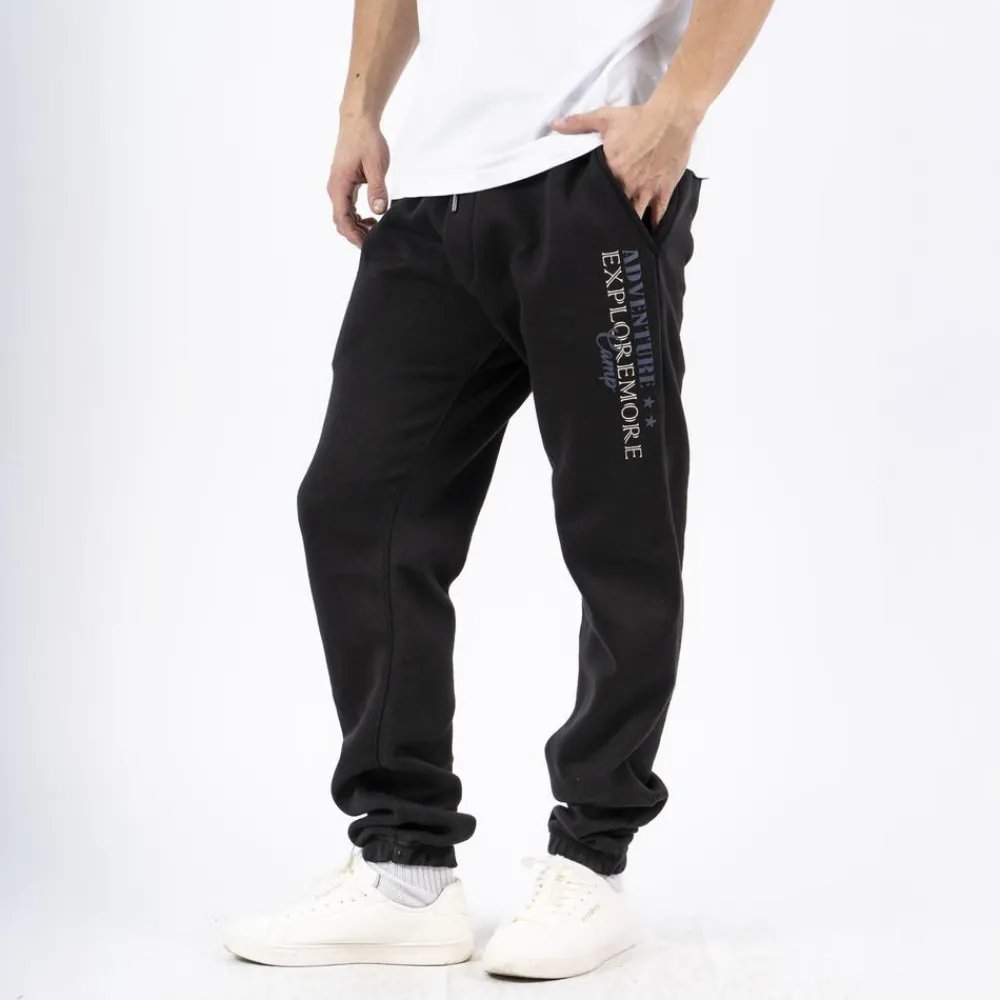 Marcus sweatpants til Herre. Bukserne har to sidelommer og en enkelt baglomme. Bukserne har elastik og snøre i taljen, som gør det muligt at justere bukserne. Bukserne er fremstillet i blødt materiale og har en børstet inderside. Det ene bukseben har et mindre print med tekst.