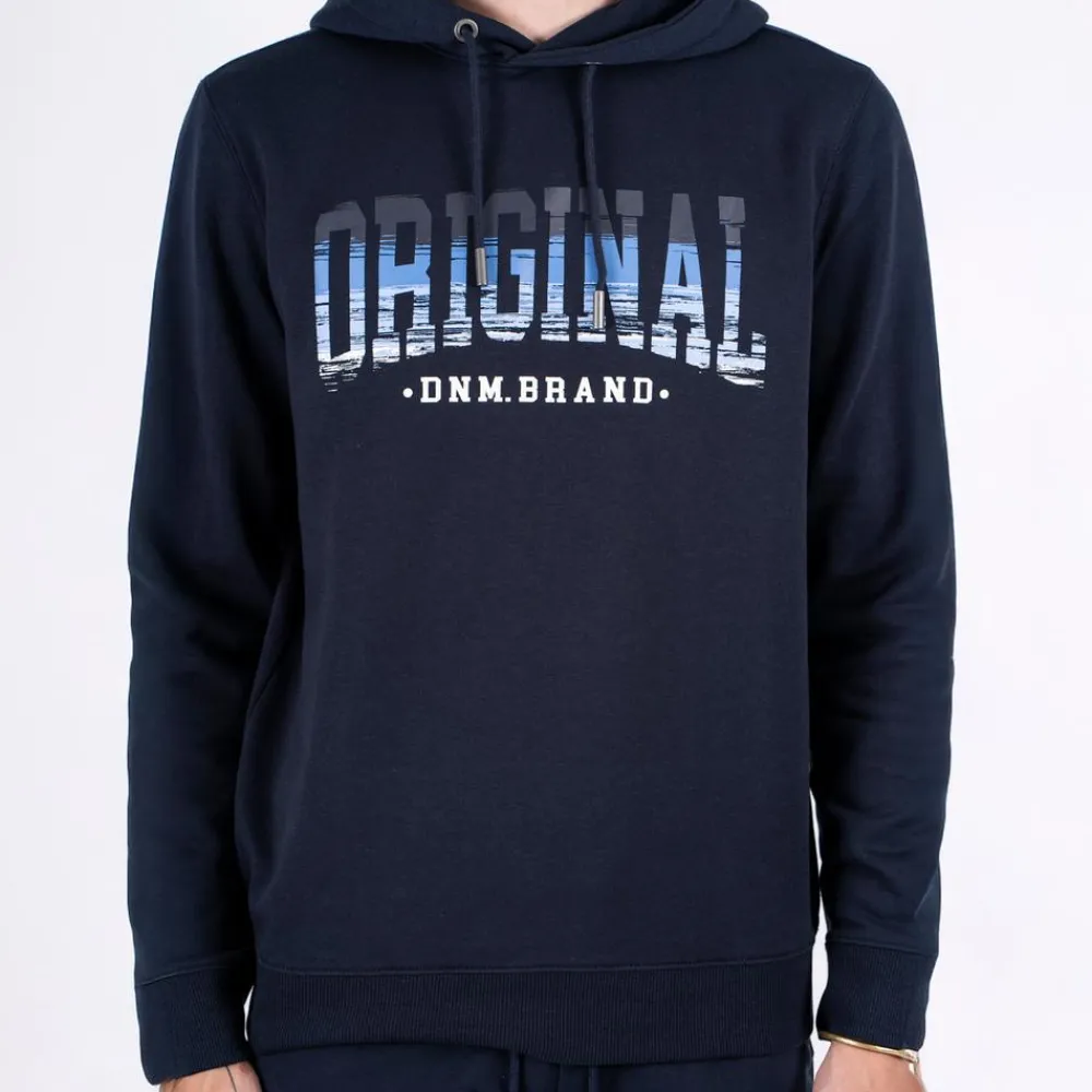 Marcus hættetrøje med print på fronten. Hættetrøjen har en blød børstet inderside, en kængurulomme på fronten og hætte med snøre.
