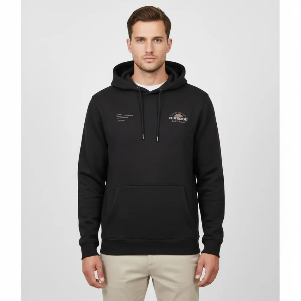 Marcus hættetrøje med print på fronten. Hættetrøjen har en blød børstet inderside, en kængurulomme på fronten og hætte med snøre.