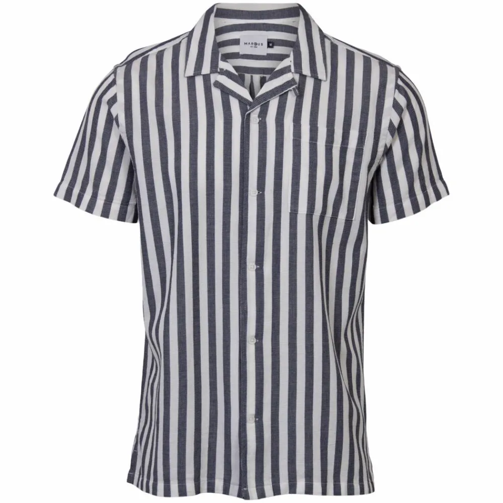 Marcus herre stribet kortærmet skjorte med gennemgående knaplukning, krav samt brystlomme.