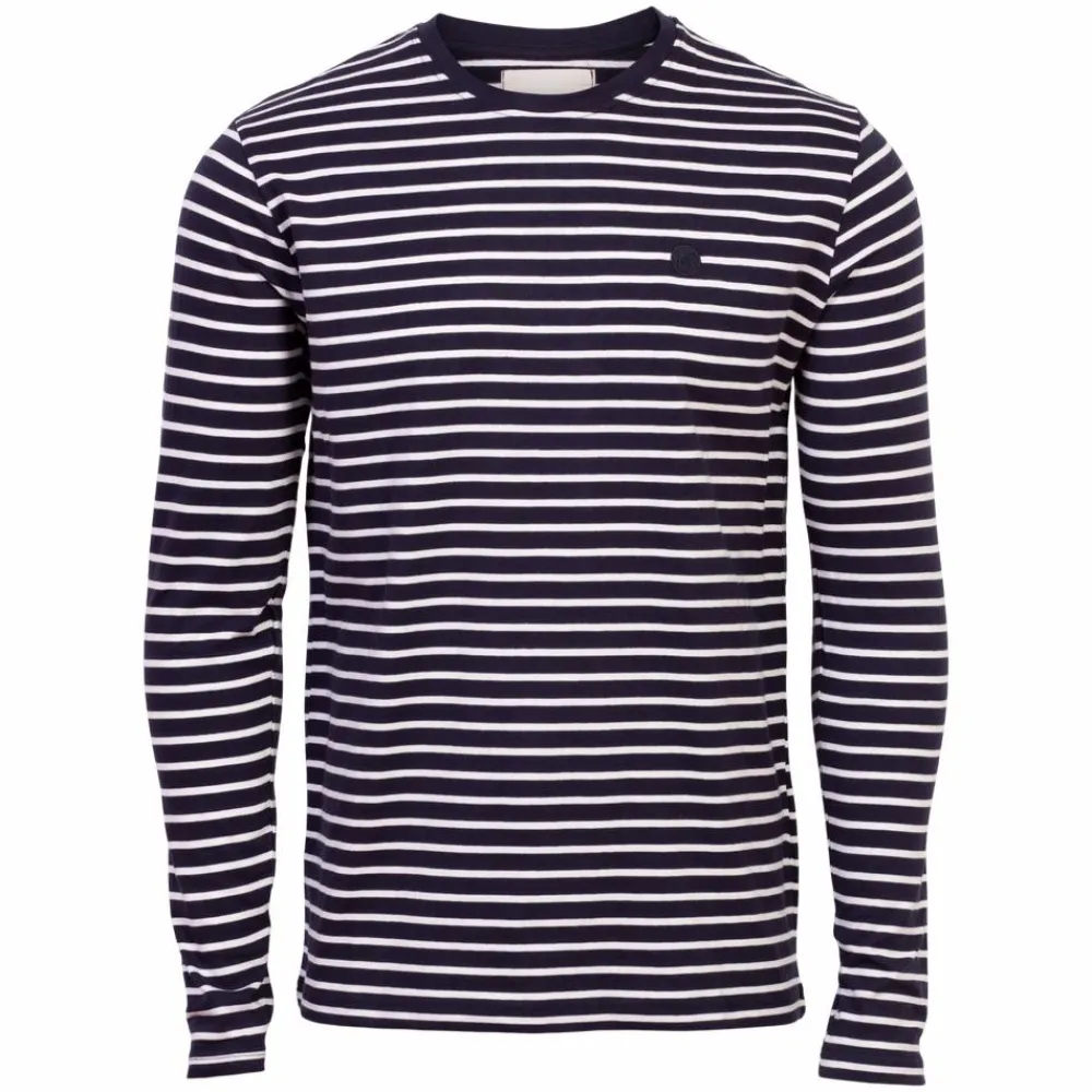 Marcus Eli herre langærmet t-shirt striber. Trøjen har rund halsudskæring, med en ribkant ved halsen.