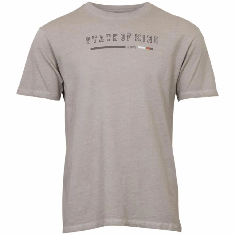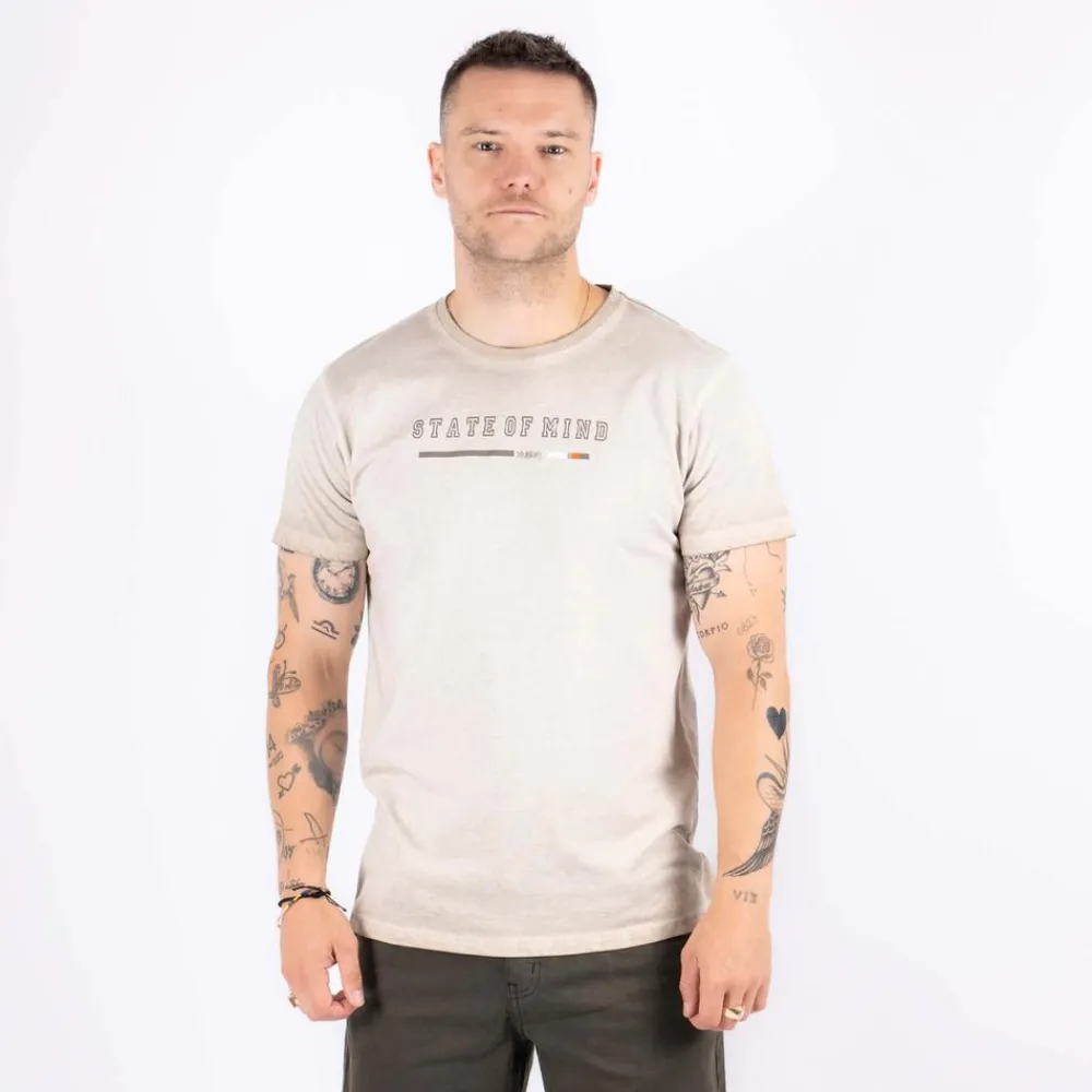 En hverdagsvenlig t‑shirt til herre i en varm, lys beige, der får garderoben til at spille. Pasformen er klassisk med rund hals og korte ærmer, og et diskret brystprint giver et roligt, moderne udtryk. Den er let at style med alt fra jeans til chinos og fungerer både alene og som lag under en åben skjorte eller let jakke.