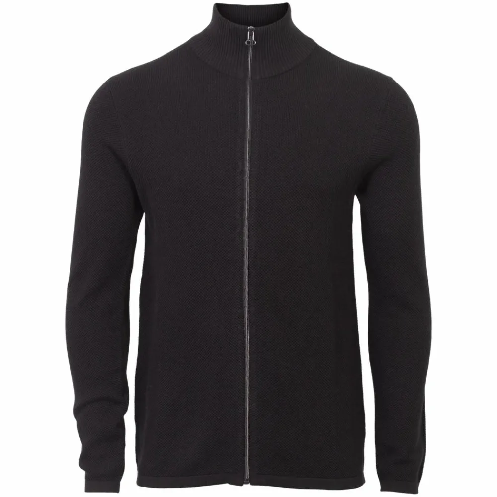 Marcus striktrøje i struktur med gennemgående lynlåslukning. Trøjen har lange ærmer og høj ribkantet hals.