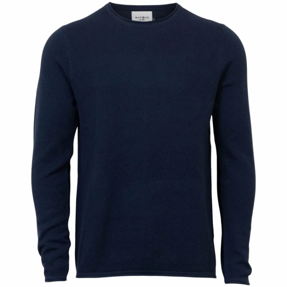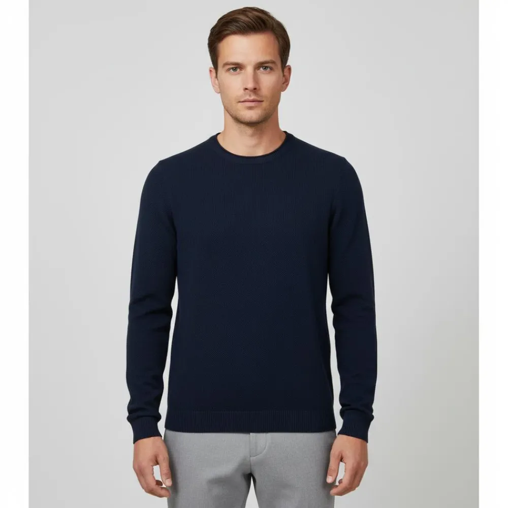 Denne strik samler hverdagsvenlig varme og et roligt udtryk. Den fine struktur og runde hals giver en pæn silhuet, der passer til alt fra kontor til weekend. Klassisk pasform gør den let at bruge alene eller over en skjorte.