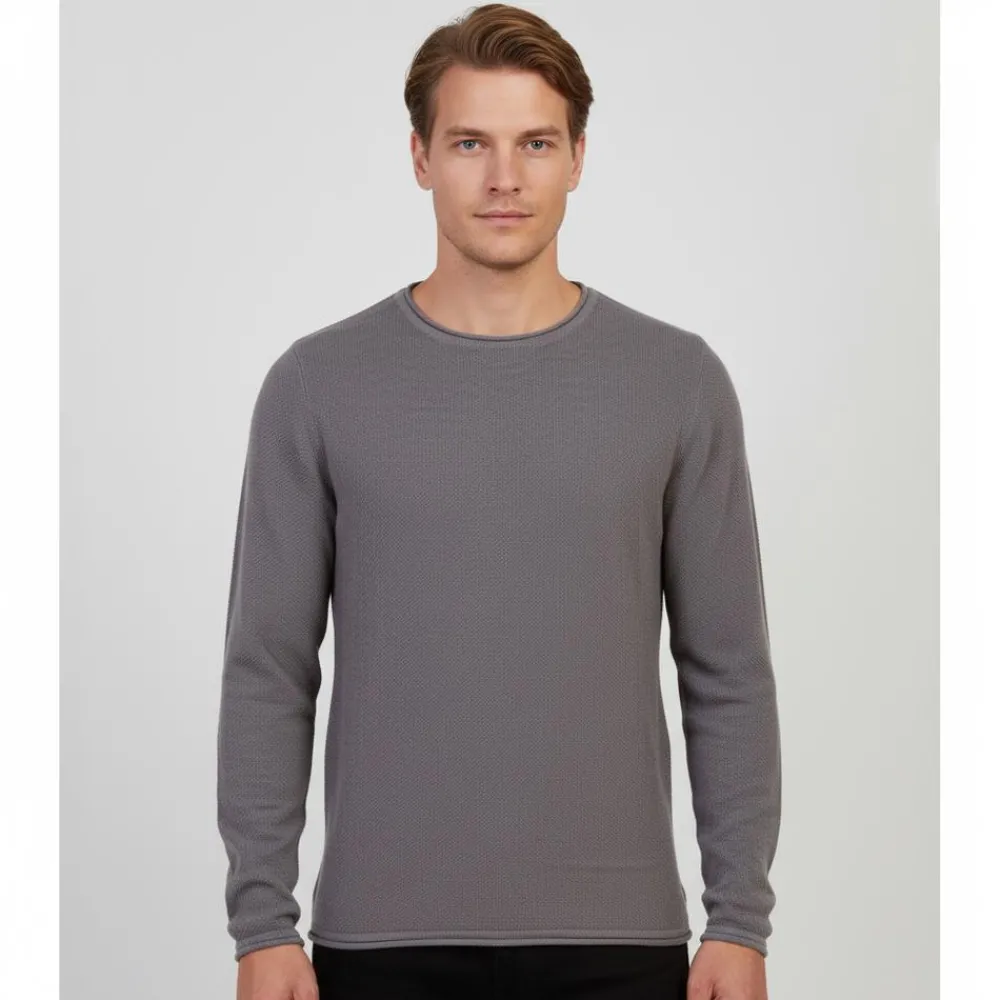 Denne strik samler hverdagsvenlig varme og et roligt udtryk. Den fine struktur og runde hals giver en pæn silhuet, der passer til alt fra kontor til weekend. Klassisk pasform gør den let at bruge alene eller over en skjorte.