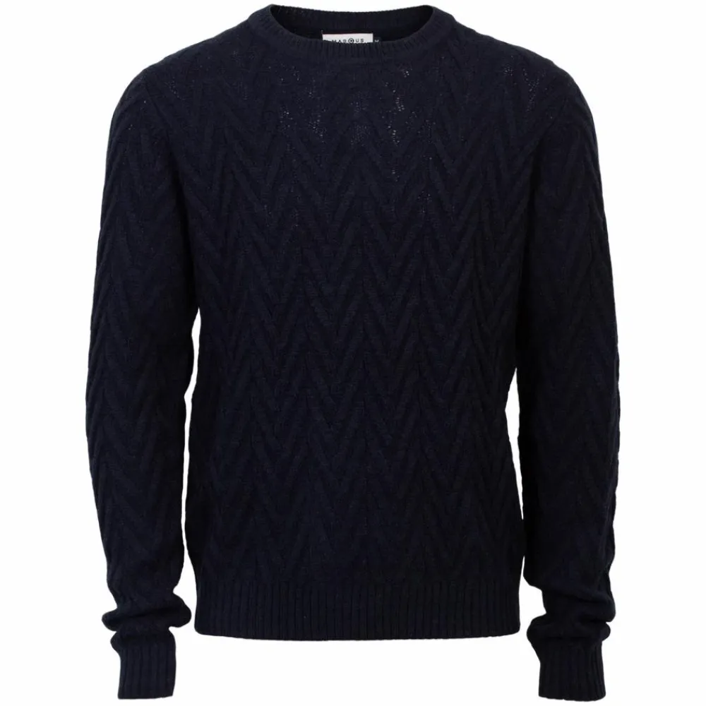 Marcus langærmet striktrøje i flot mønster. Striktrøjen har en bred ribkant langs alle åbninger.