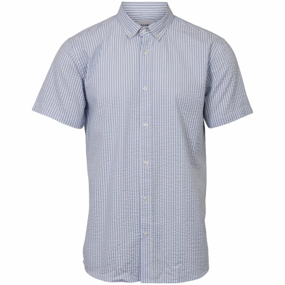 Marcus herre kortærmet skjorte med striber, gennemgående knaplukning og krave.