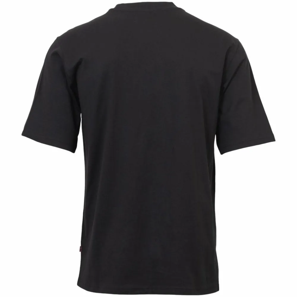 Sort t-shirt til mænd med rund hals og et lille, diskret brystmotiv, der giver et roligt udtryk og passer til alt. Snittet er regulært og følger kroppen uden at stramme, så den fungerer både alene og under en åben skjorte.