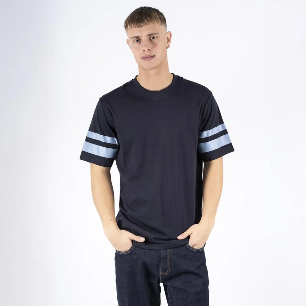 Marcus herre t-shirt i 100% bomuld, rund halsudskæring og regular fit. T-shirten har printet brede striber på ærmerne.