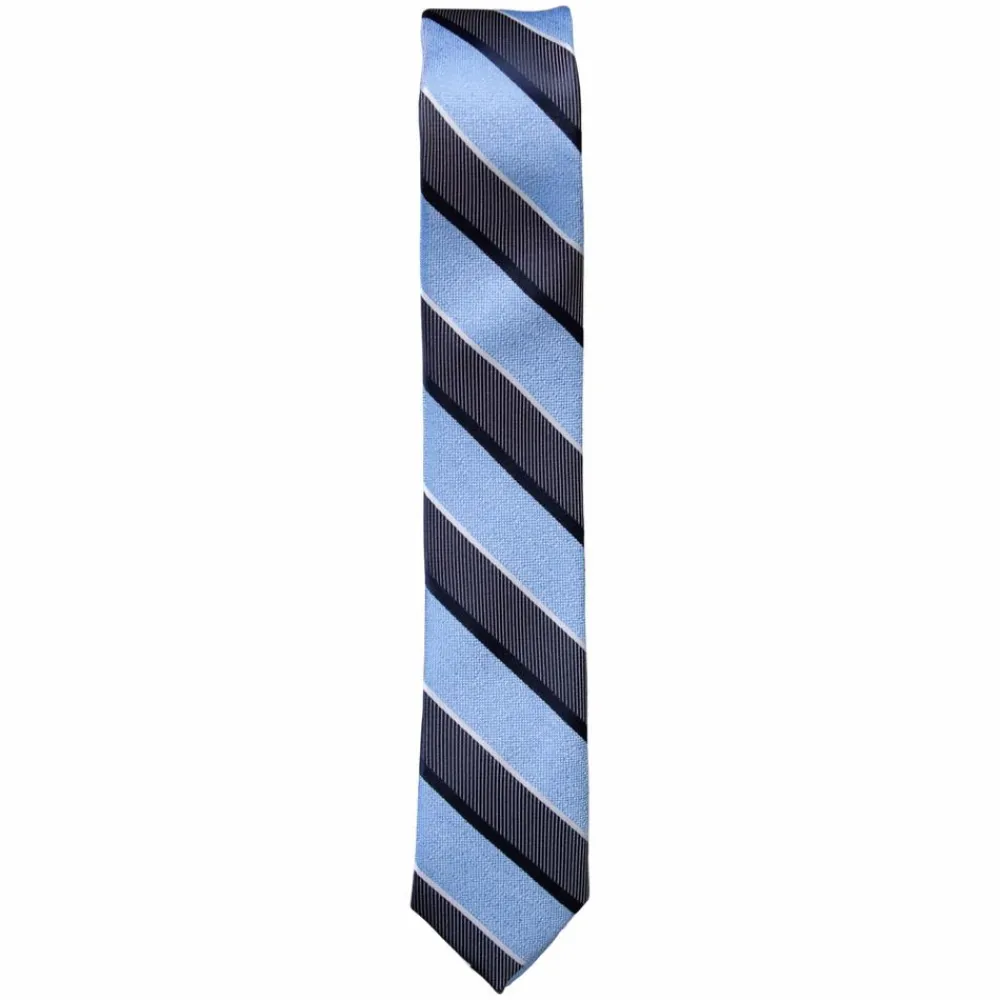 Klassisk slips i blå med sorte og hvide striber.