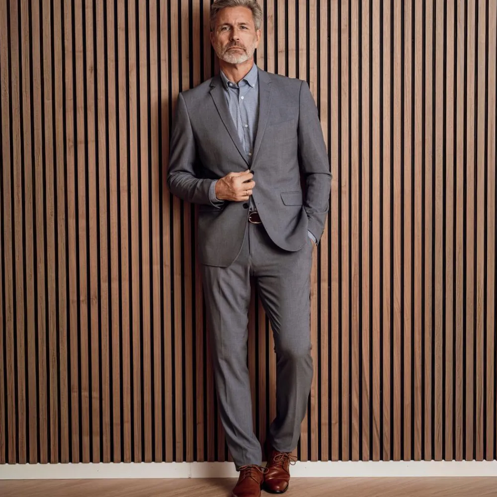 NERO slim fit klassiske habitbukser med stretch. Bukserne har 2 skrålommer, 2 baglommer med knap, bæltestropper samt knap- og lynlåslukning.