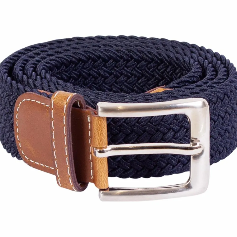 Flettet herre bælte. Elastisk bælte med læderbesætning lavet af spalt læder belagt med PU. Bæltet er 3,5 cm bredt og kan spændes hvor som helst på bæltet.