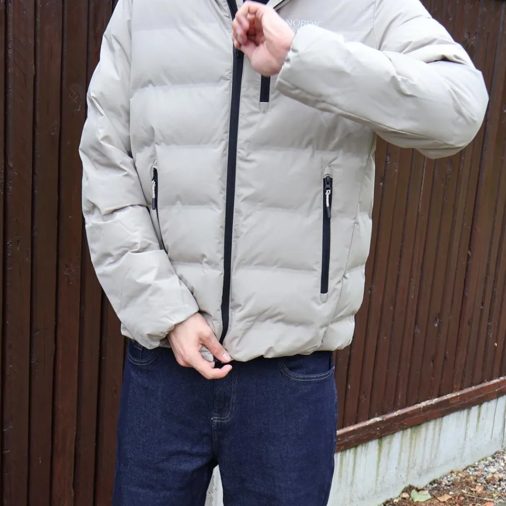 Varm og isolerende puffer vinterjakke fra Nordic Project18. Dynejakken har ekstra varme-effekt og er perfekt til de kolde vintermåneder. Jakken har en høj hals, gennemgående lynlåslukning og hætte med justerbar elastiksnøre. Den har tre praktiske lynlåslommer og kan snøres ind i bunden ved hjælp af den indvendige elastiksnøre med lås.