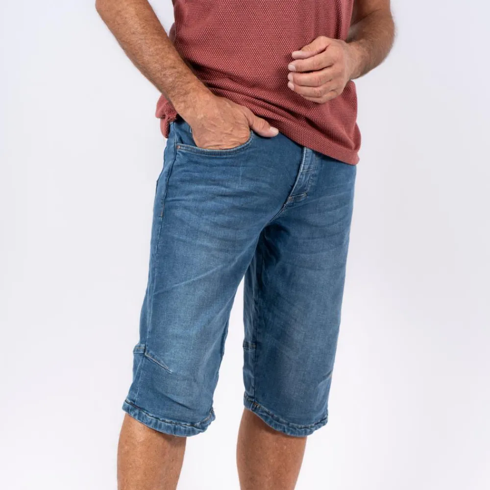 Pre End Bondo herre denim knickers shorts. Super smarte knickers til mænd med en skæringer på lårene. Modellen har 2 lomme foran, samt 2 lommer bagpå. Shortsene har mulighed for at have bælte. Modellen måler 186 cm. og bærer en str. 32.