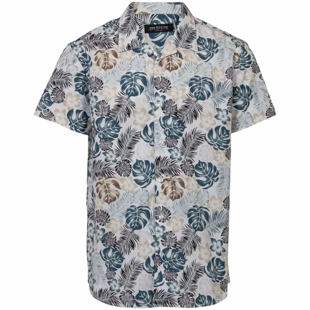 Pre End herre kortærmet skjorte med all-over print, gennemgående knaplukning samt krave.