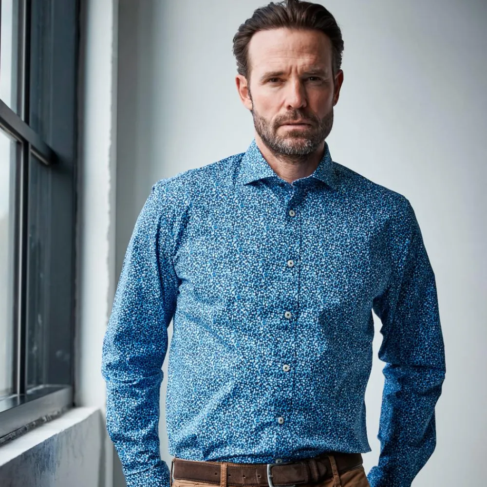 Pre End Fuller herre skjorte. Super flot skjorte med flot motiv af blomster, samt flot krave om halsen. Modellen har gennemgående knappelukning, samt knapper i ærmerne.