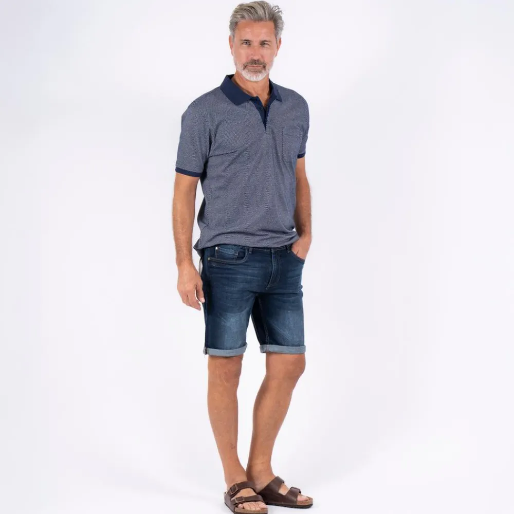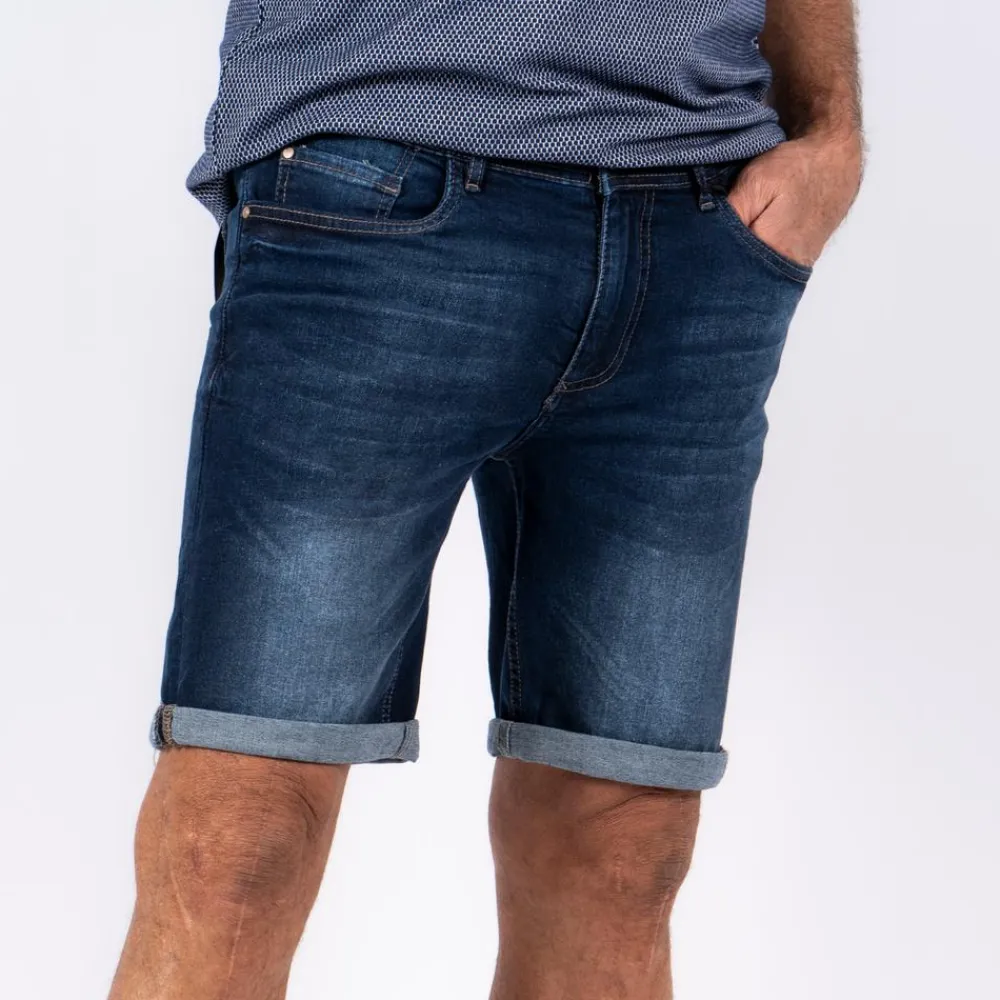 Pre End herre denim shorts med opsmøg. De er designet med to åbne lommer foran og to åbne baglommer. Det er muligt at smøre shortsenes bukseben ned. Shortsene er fremstillet i strækbart og blødt materiale. Modellen er 186 cm og bærer en str. 32.
