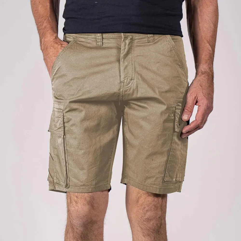 Pre End Lanton cargo shorts med knap- og lynlåslukning. De har lommer på siden af benene på begge lår. Modellen måler 186 cm. og bærer en str. 32.