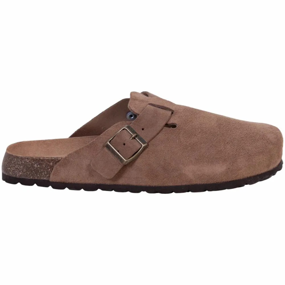 Skvulp herre træsko. Træskoene har en spænde over vristen, som gør at træskoene kan tilpasses om vristen. Træskoene er bløde og behagelige at have på.