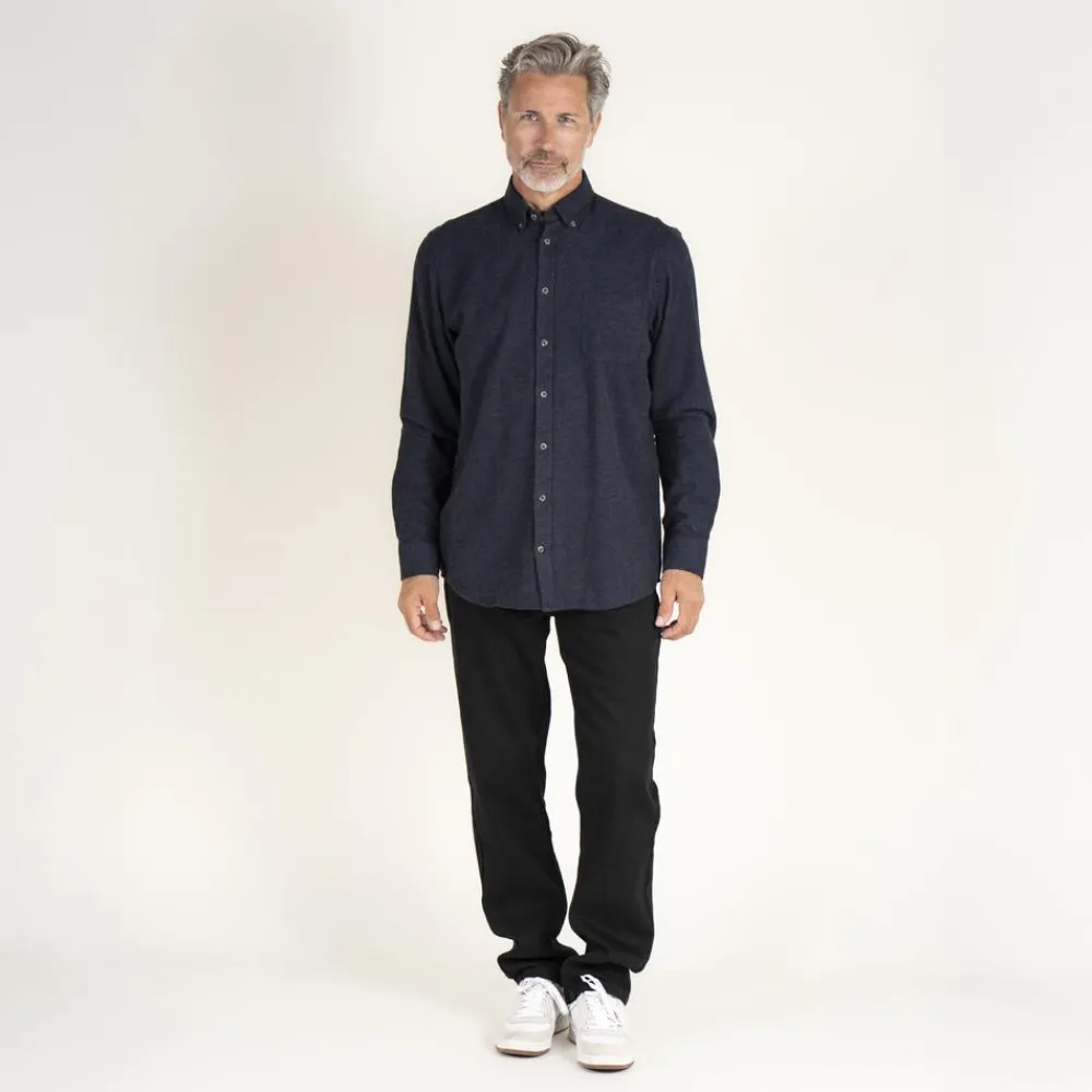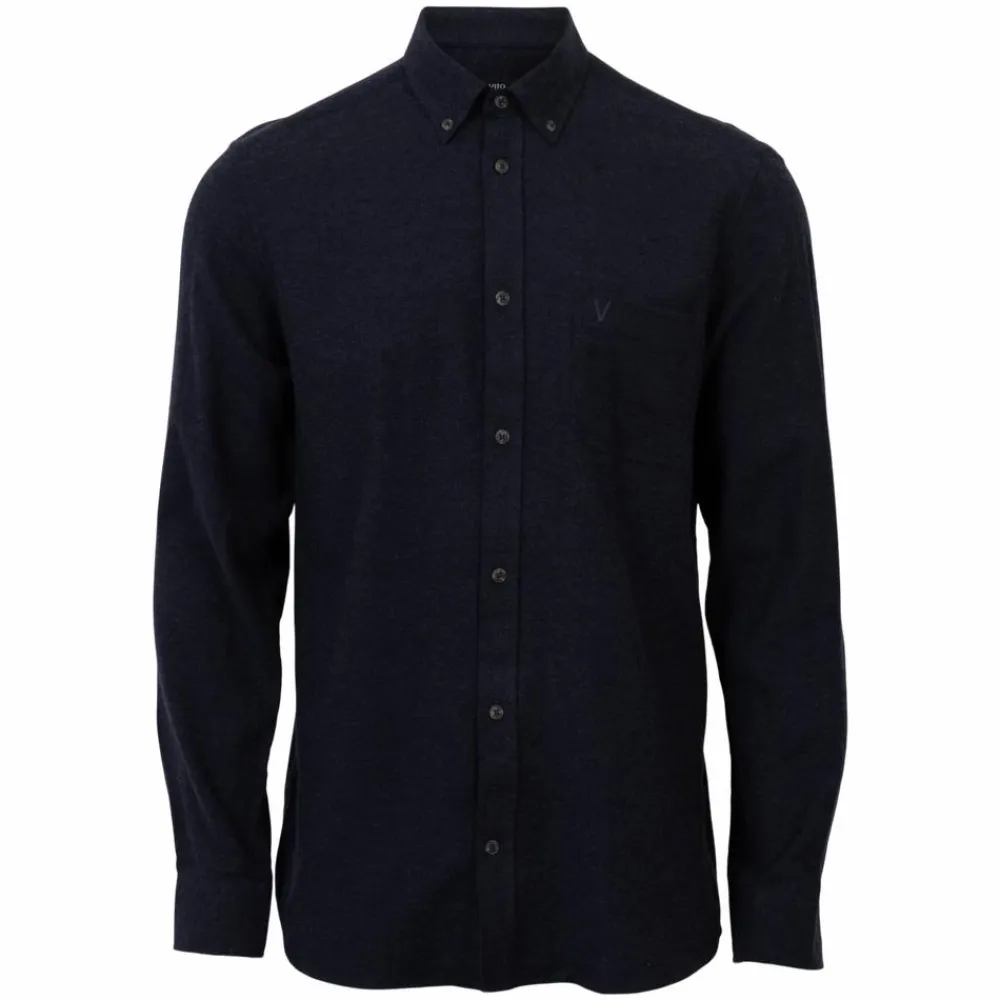Vito skjorte til herre i blød, ensfarvet flanel. Skjorten har lange ærmer, brystlomme, en gennemgående knappelukning samt to knapper i kraven og ved ærmeåbning.