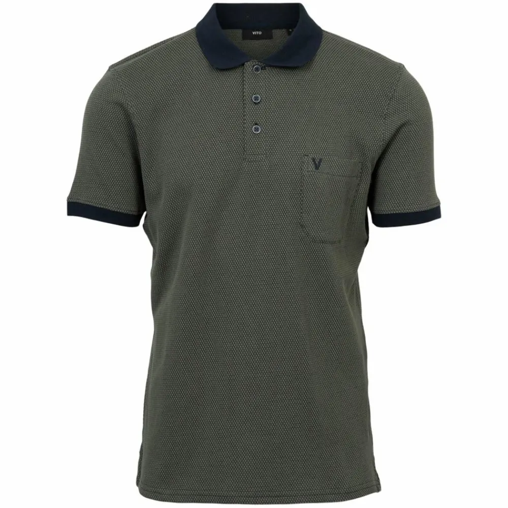 Vito kortærmet polo trøje med mønster. Polo trøjen har en klassisk krave, 3 knapper ned langs krave og en enkelt sidelomme på venstre side. Trøjen er fremstillet i et blødt og behageligt materiale, der føles behageligt mod huden. Polo trøjen er ideel til både hverdagsbrug og festlige anledninger.