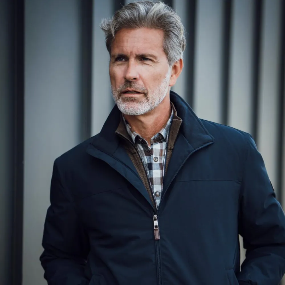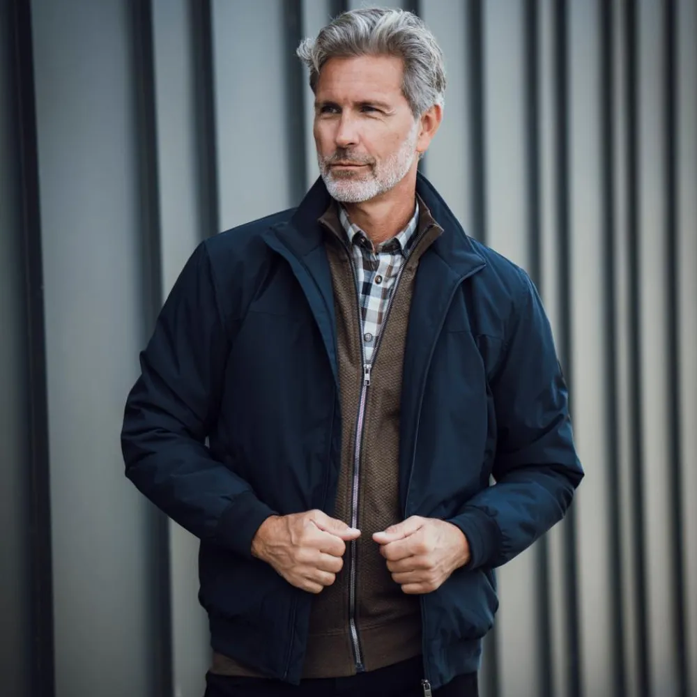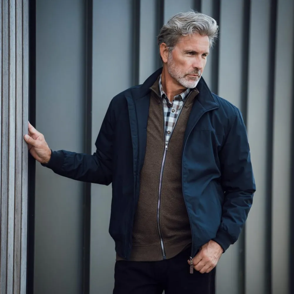 Klassisk og stilren herre jakke fra Vito. Jakken er lavet i et let og slidstærkt materiale og er perfekt til hverdagsbrug og overgangsvejr. Den har høj krave, gennemgående lynlås, praktiske sidelommer med lynlås og to indvendige lommer. Ribkanten forneden og i ærmeåbning, giver jakken en flot og moderne pasform.
