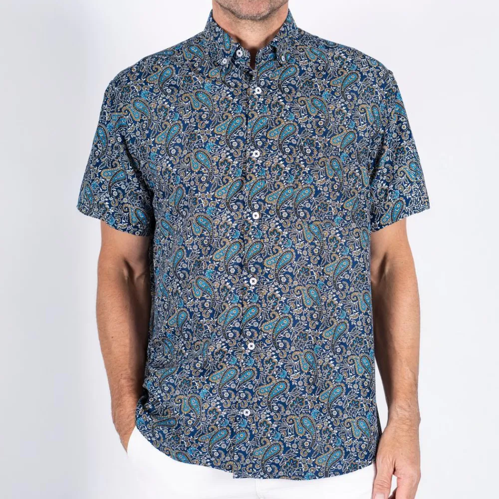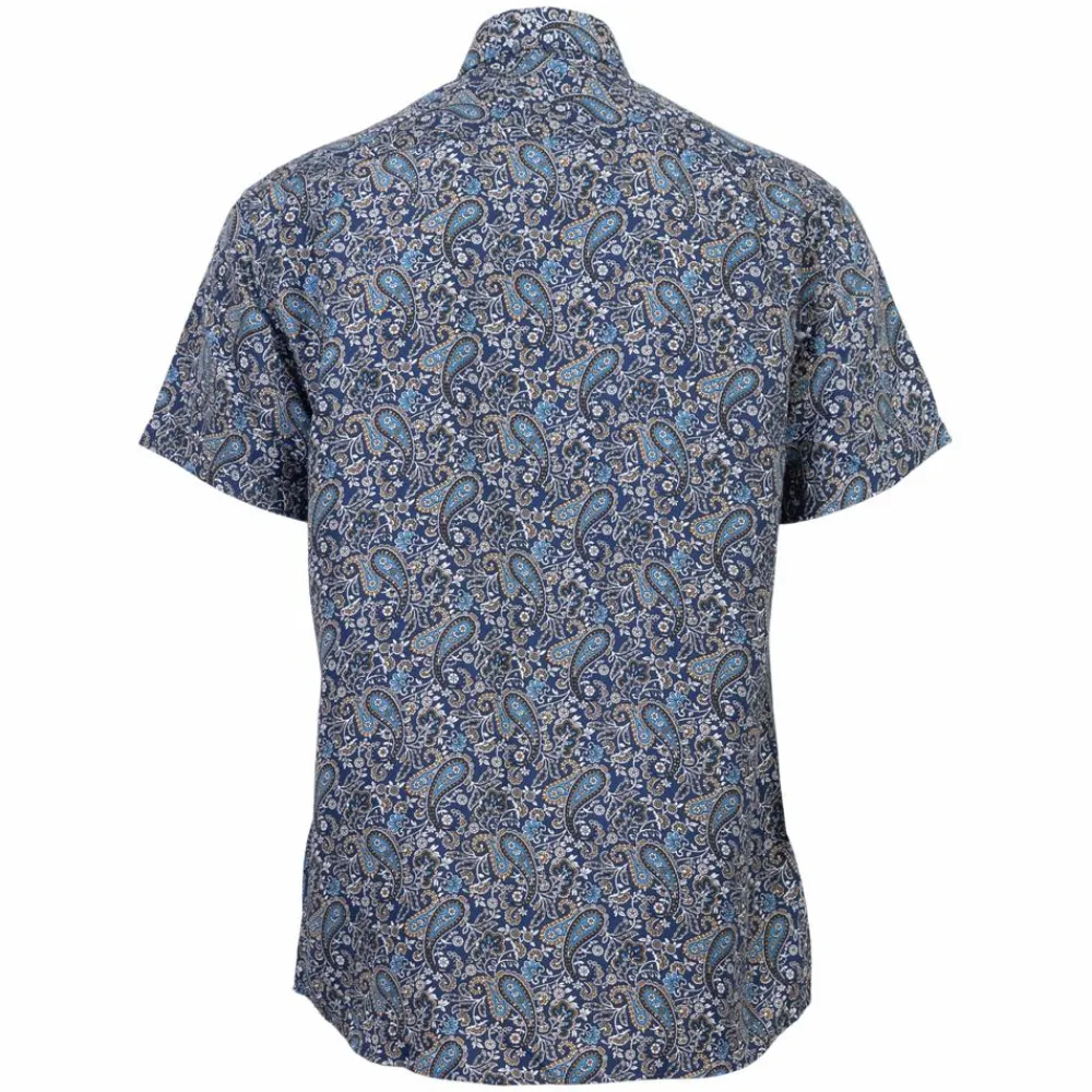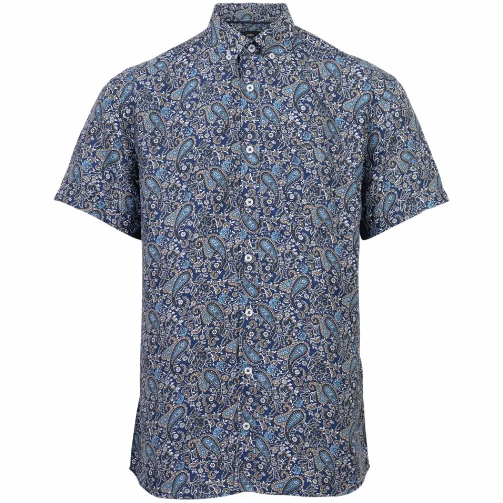 Vito kortærmet herre skjorte med all-over print. Skjorten til herre har en enkelt brystlomme i venstre side, samt gennemgående knaplukning. Denne skjorte med korte ærmer er blød og behagelig at have på, og den egner sig til både hverdagsbrug og festlige lejligheder med sit stilfulde udtryk.